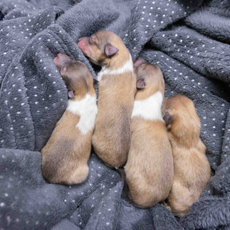 La camada está compuesta por 1 hembra y 3 machos, todos arena acarbonados.